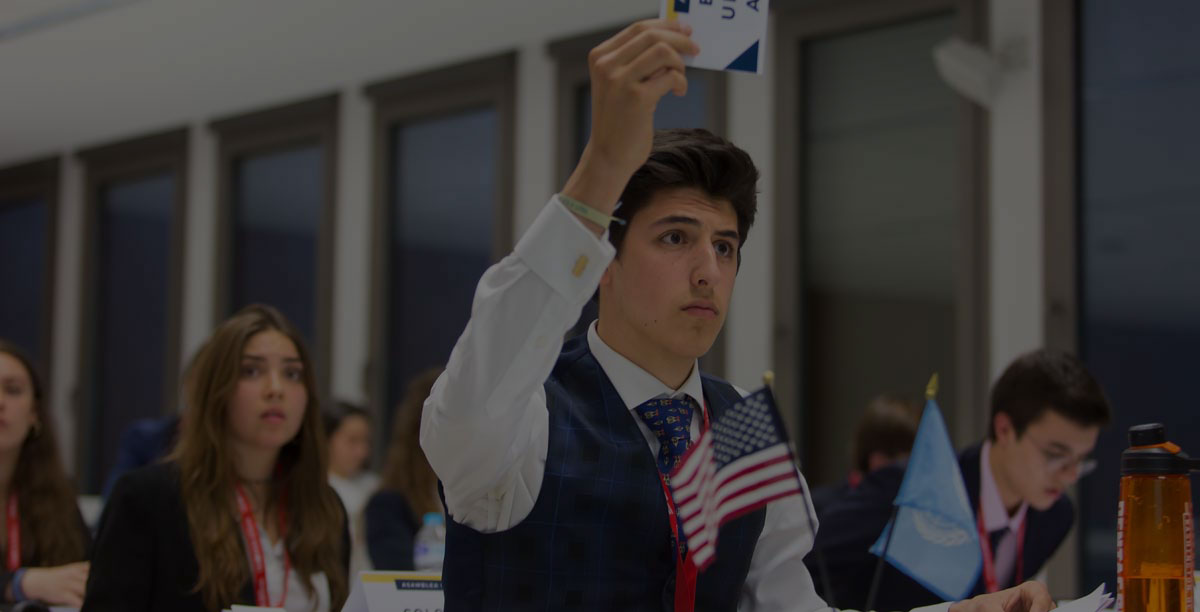 Alumnos se reúnen para debatir los problemas de la diplomacia, economía y de políticas sociales. Siguen los protocolos de las Naciones Unidas.